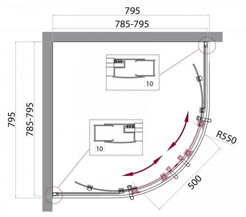 Регулировка ширины: предусмотрена за счет боковых профилей