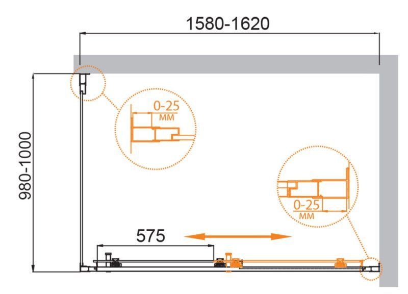 Регулировка ширины: предусмотрена за счет боковых профилей