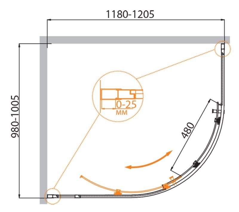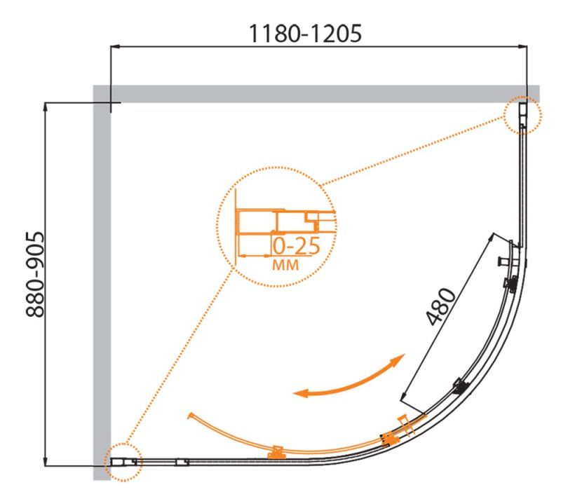 Монтаж: пристенный в угол