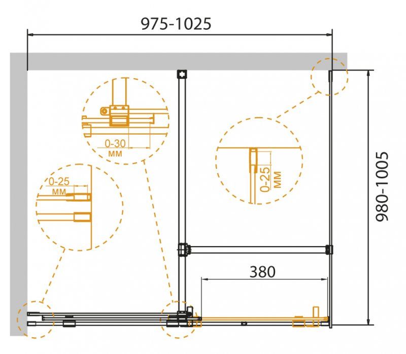 Регулировка ширины: предусмотрена за счет боковых профилей