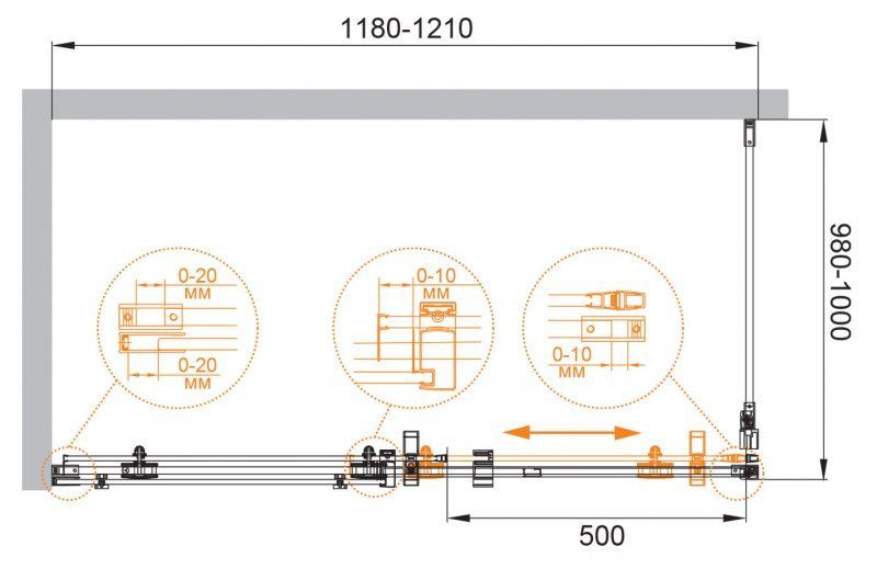 Регулировка ширины: предусмотрена за счет боковых профилей