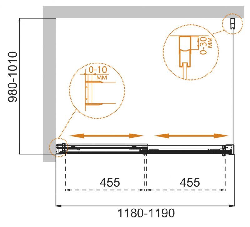 Регулировка ширины: предусмотрена за счет боковых профилей