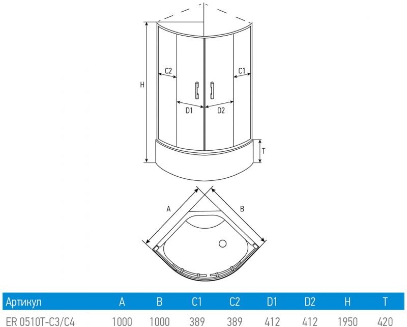 Душевой уголок Erlit Comfort ER0510T-C3 100x100 см.