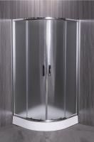 Уголок душевой. Низкий поддон; сифон с гидрозатвором; алюминиевый профиль, цвет: "глянцевый хром", стекло толщиной 5 мм, фактура: "мороз", двойные верхние ролики, регулировочный пристенный профиль 20мм. Стальная ручка.