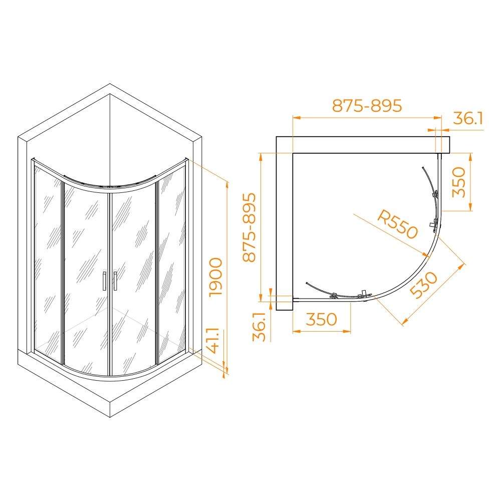 Форма душевой зоны: ¼ круга