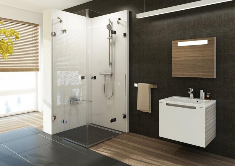 Душевой уголок Ravak Brilliant BSRV4 80 Г-образный, с двумя распашными дверьми. Состоит из двух ровных неподвижных частей и двух ровных подвижных частей, образующих двери. Витраж из безопасного стекла толщиной 6/8 мм.