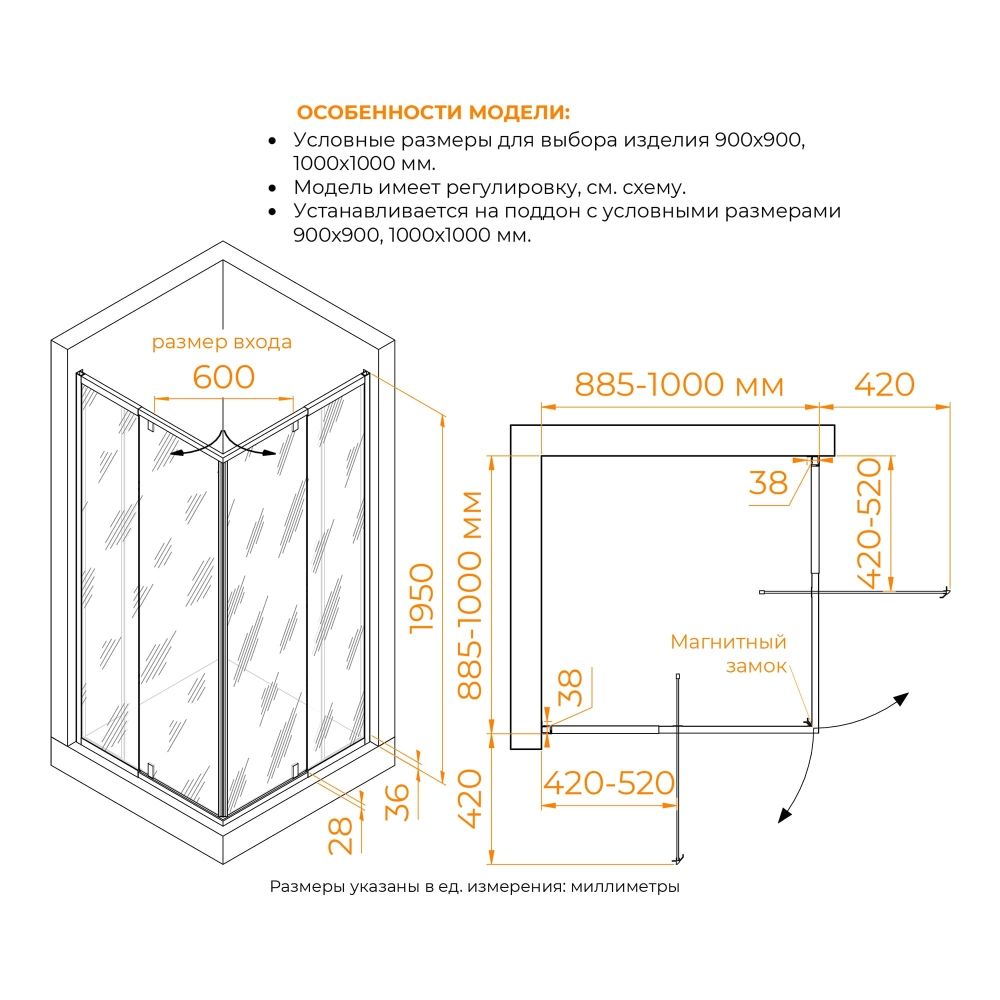 Возможна установка в размеры (900-1000)x(900-1000) |