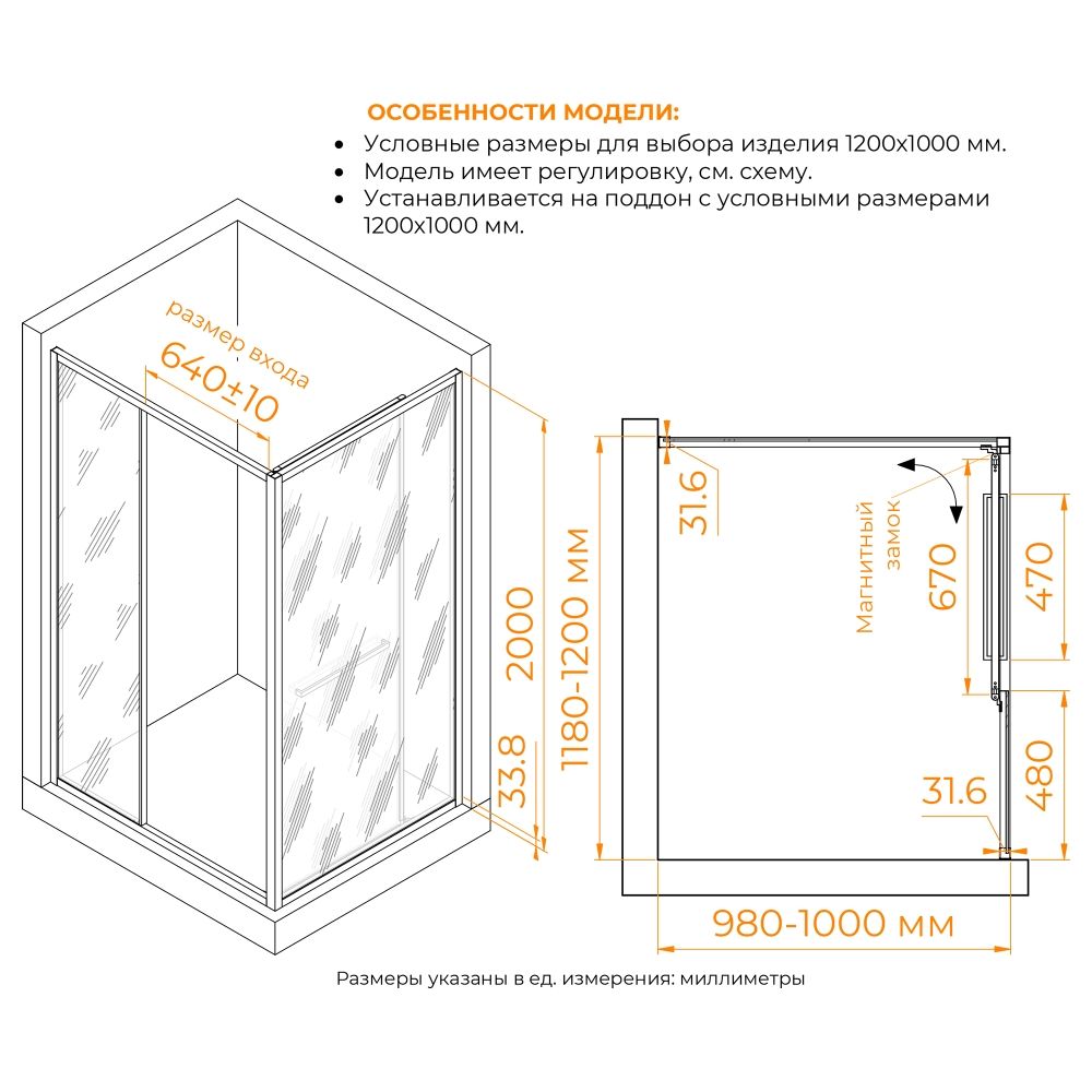 Размеры (Д×Ш): 1000×800, 1000×900, 1200×800, 1200×900, 1200×1000 мм
