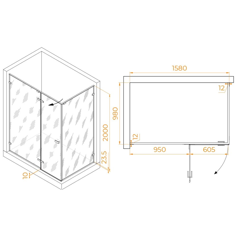 Душевой уголок универсальный, на любую сторону открытия двери, высотой 2000 мм.