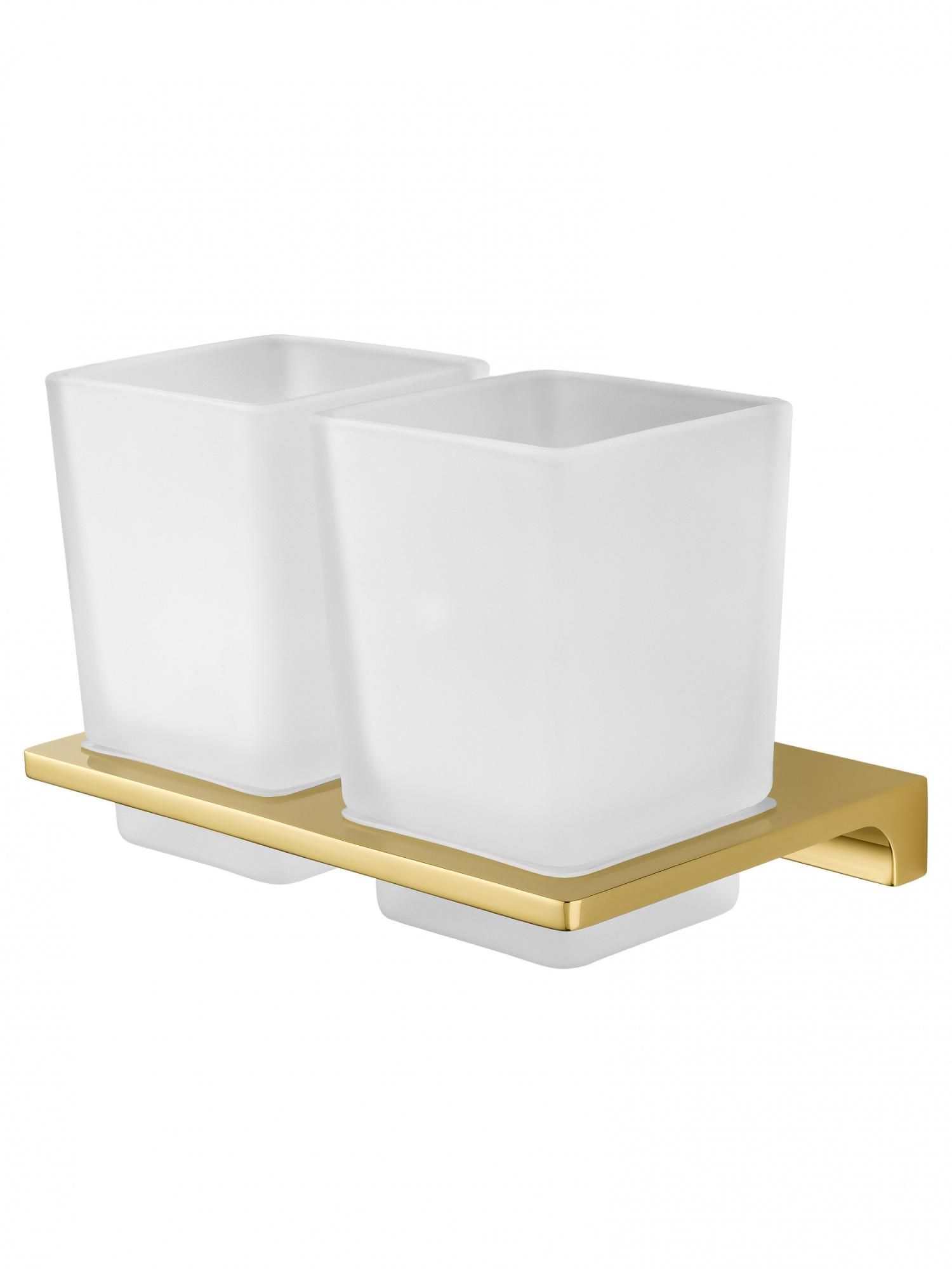 Два стакана для зубных щеток с держателем WONZON & WOGHAND ECLIPSE, Глянцевое золото (WW-9128-LG)