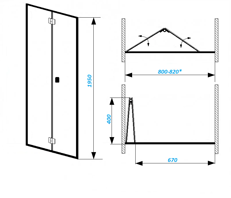 Дверь для душа BELLA D81B складная, черный профиль, прозрачное стекло Cerutti SPA