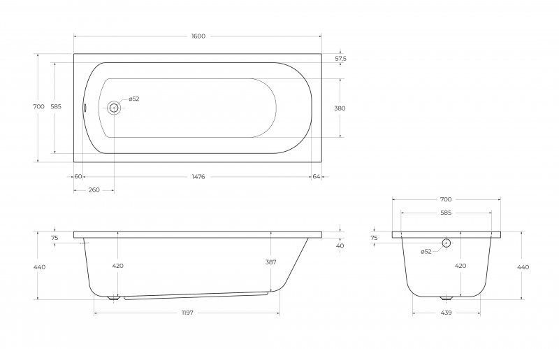 Дополнительная информация: имеется возможность установки ванны на пол, используя установочный комплект ног ECO-LEG-KIT