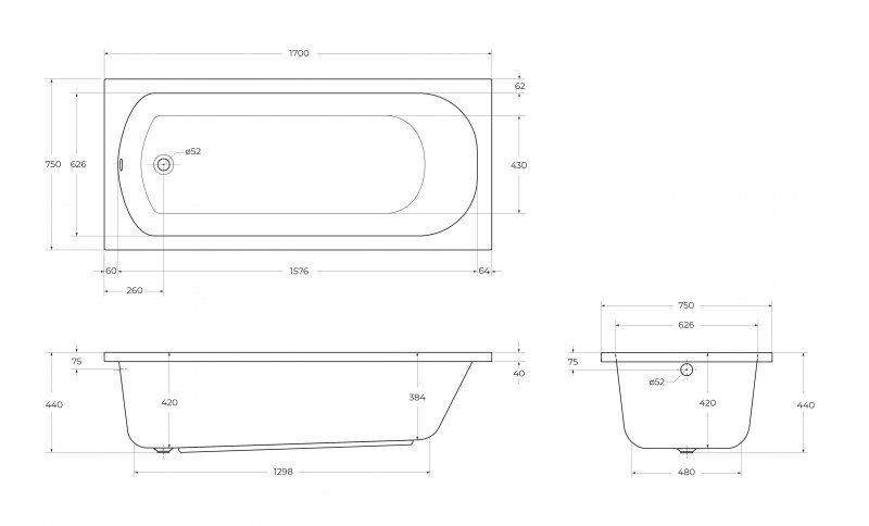 Дополнительная информация: имеется возможность установки ванны на пол, используя установочный комплект ног ECO-LEG-KIT