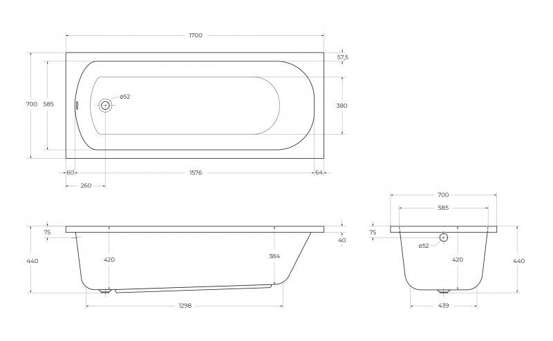 Дополнительная информация: имеется возможность установки ванны на пол, используя установочный комплект ног ECO-LEG-KIT