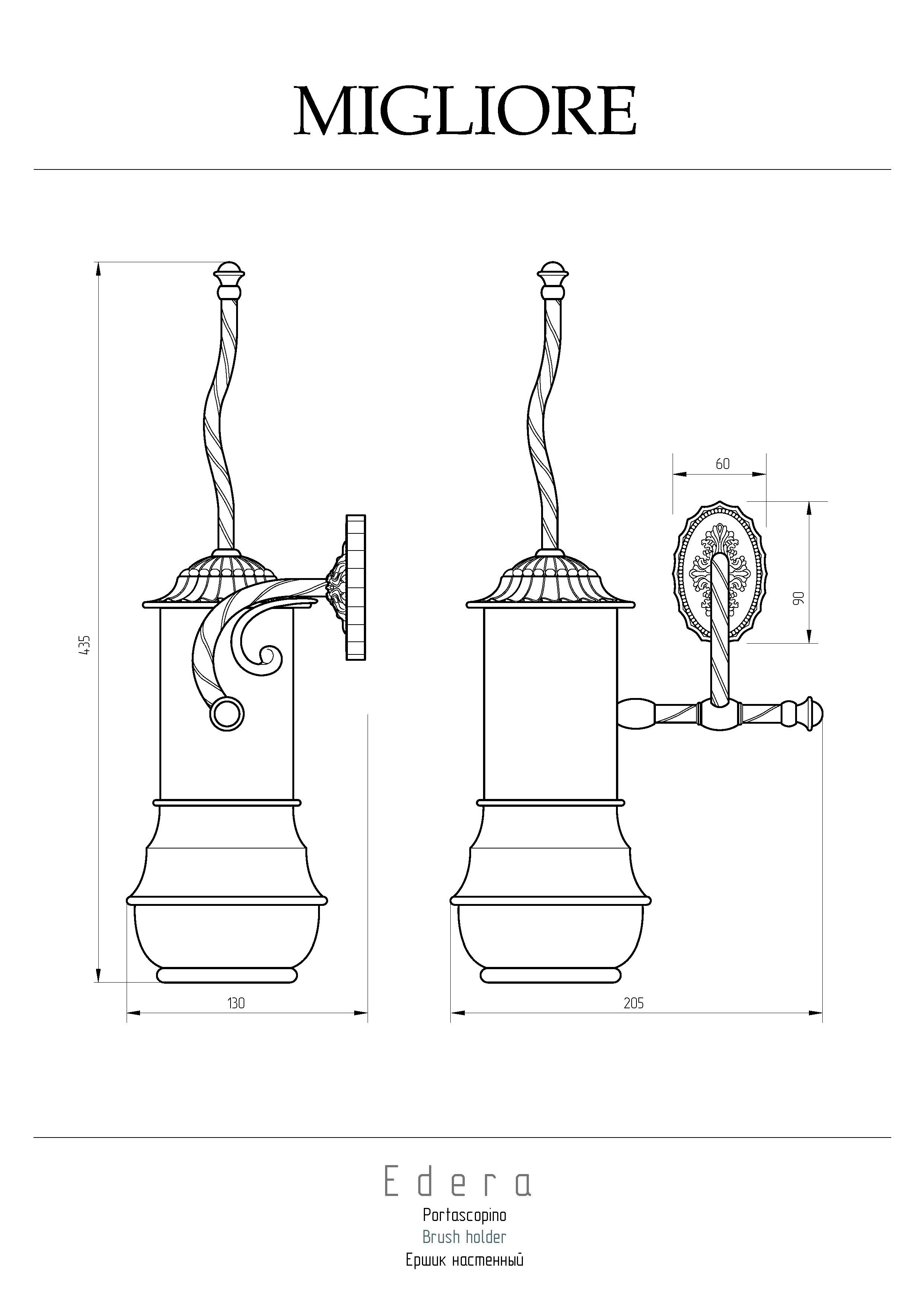 Настенный ершик коллекции EDERA бренда MIGLIORE - это функциональный аксессуар для ванной комнаты. Керамическая колба выглядит красиво и эстетично, ее легко мыть, и размещенный на стене ерш не мешает при уборке пола.Благодаря витым элементам аксессуары коллекции EDERA будут смотреться элегантно в классическом интерьере ванной комнаты.