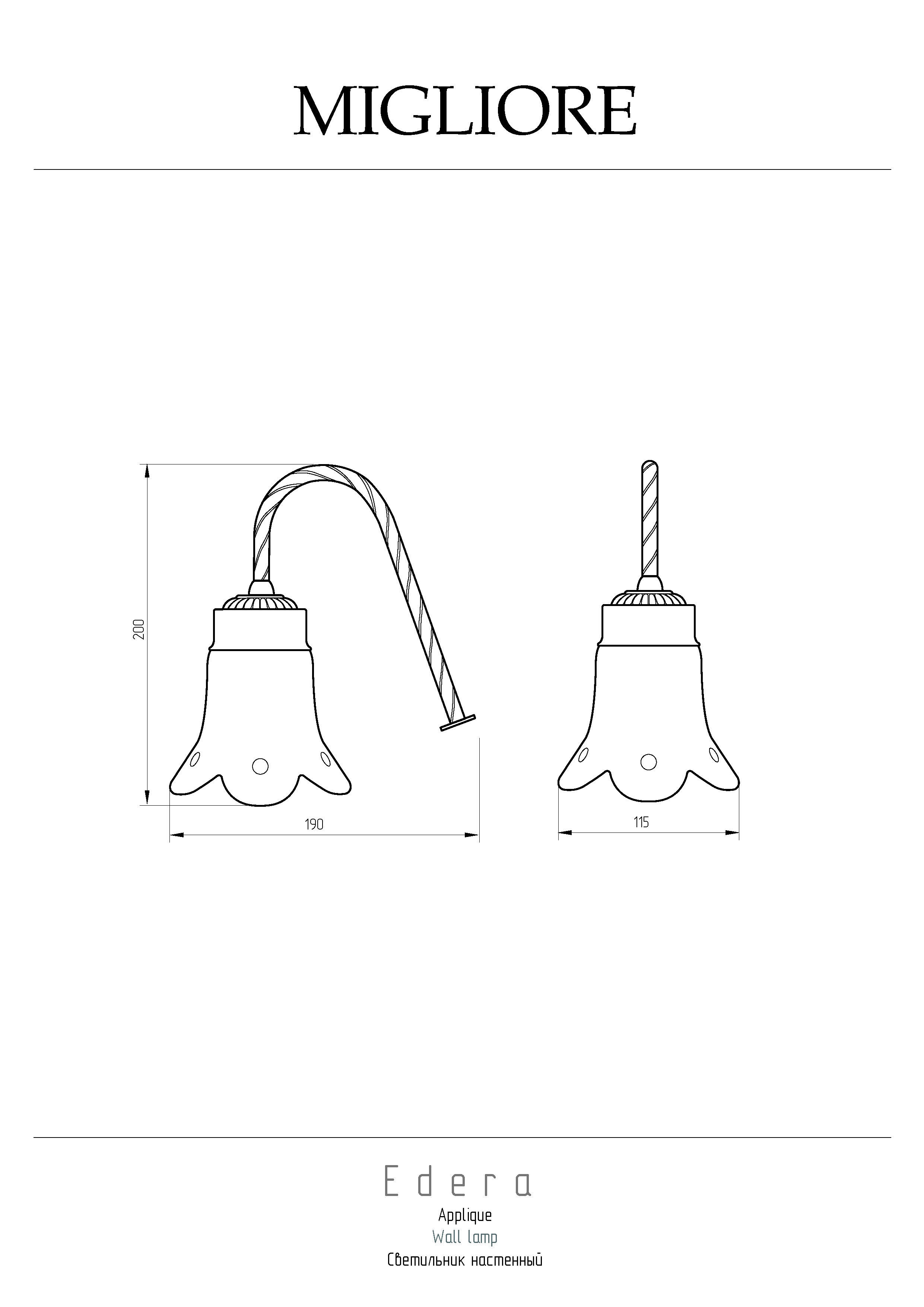 Светильник настенный коллекции EDERA бренда MIGLIORE — это красивый светильник в классическом стиле, который украсит интерьер ванной комнаты или любого другого помещения. Вешается непосредственно над зеркалом, не имеет декоративной розетки.