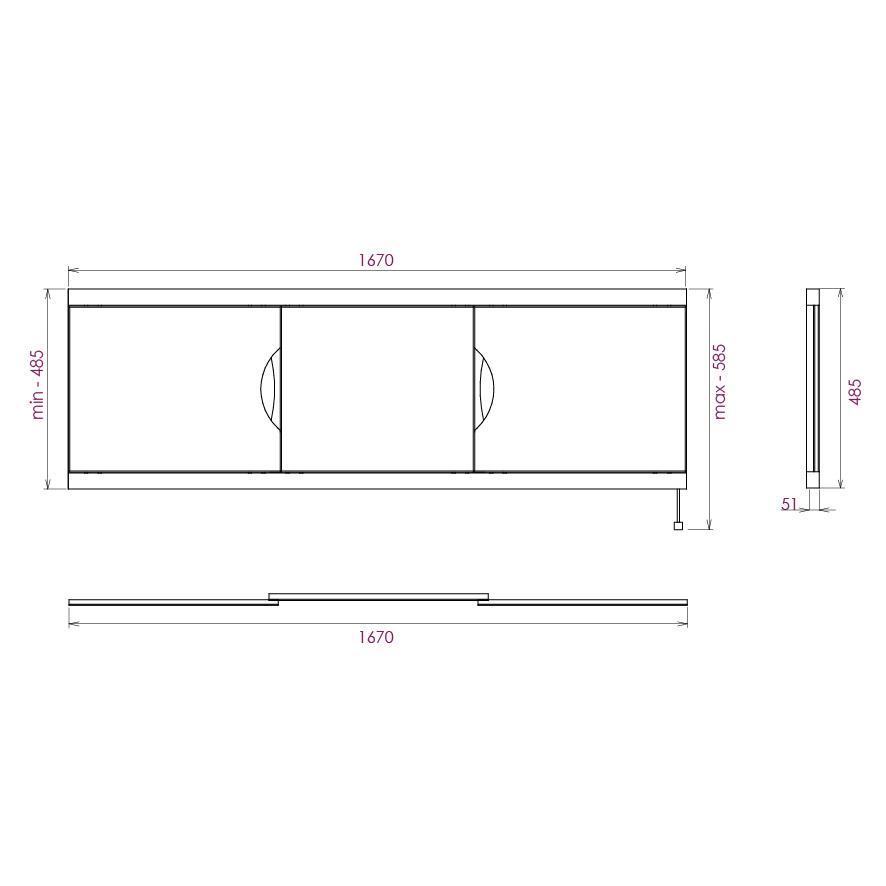 Ножки позволяют регулировать экран по высоте от 52 до 60 см, благодаря этому экран является универсальным и впишется в интерьер любой ванной комнаты.