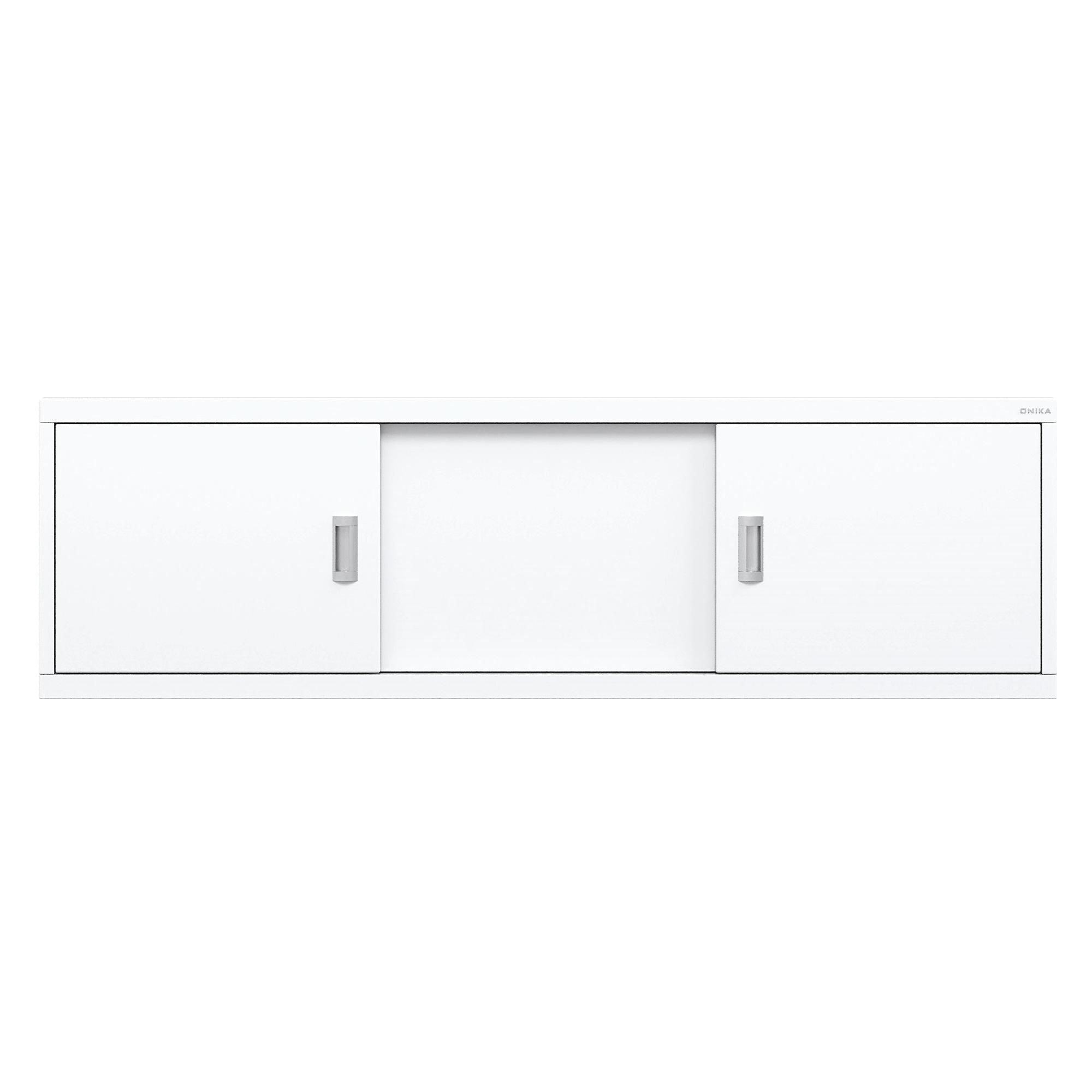 Конструкция имеет три подвижные раздвижные двери из МДФ, покрытых высокоглянцевой белой пленкой. Две боковые дверцы с врезными хромированными металлическими ручками.