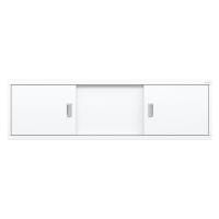 Конструкция имеет три подвижные раздвижные двери из МДФ, покрытых высокоглянцевой белой пленкой. Две боковые дверцы с врезными хромированными металлическими ручками.