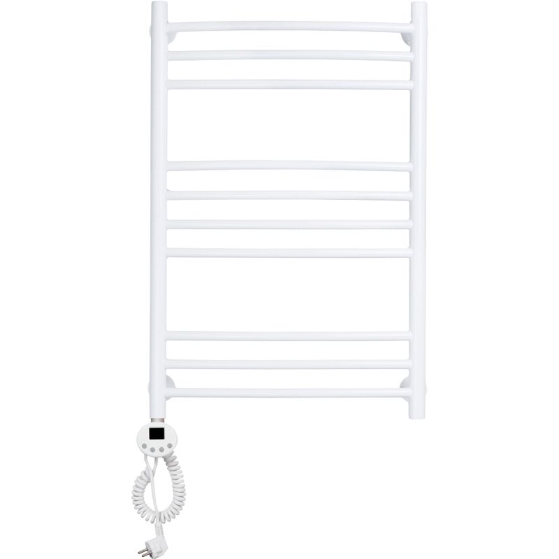 Электрический полотенцесушитель Domoterm Калипсо П10 500x800 БЕЛ EL в белом цвете, изготовлен из нержавеющей стали, обеспечивающей его надежность и долговечность. Используется для просушки влажных вещей и полотенец, а также дополнительного обогрева помещения.