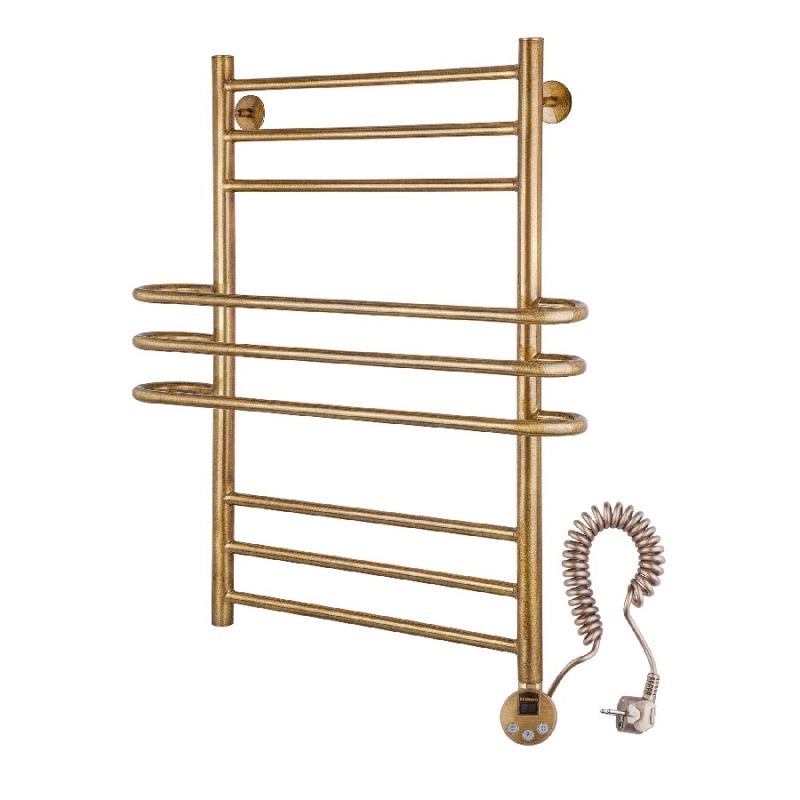 Электрический полотенцесушитель Secado Палермо 50х100 э. Изготовлен из высококачественной бесшовной сантехнической латунной трубы с термостойким лаковым покрытием. Может подключаться к скрытому электрическому соединению, электропроводом с вилкой. Есть электровыключатель.Характеристики: