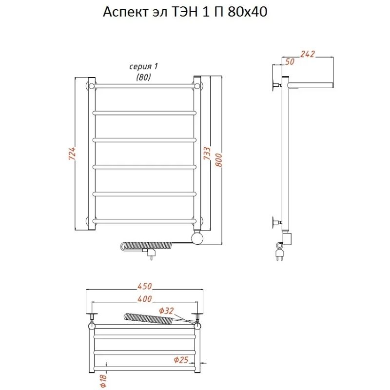 Электрический полотенцесушитель Тругор Аспект 1 элТЭН 80x40 см с полкой, цвет хром. Используется для просушки влажных вещей и полотенец, а также дополнительного обогрева помещения. Отсутствует вероятность замерзания теплоносителя. Изготовлен из пищевой нержавеющей трубы марки AISI 201, которая отличается стойкостью к высоким температурам и образованию коррозии.