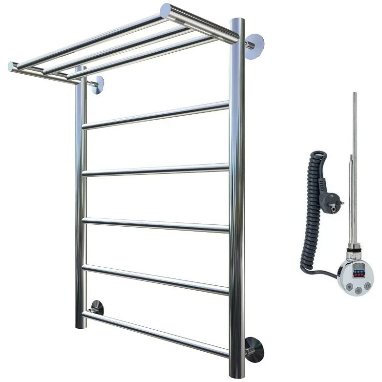 Электрический полотенцесушитель Тругор Аспект 1 элТЭН 80x50 см с полкой, цвет хром. Используется для просушки влажных вещей и полотенец, а также дополнительного обогрева помещения. Отсутствует вероятность замерзания теплоносителя. Изготовлен из пищевой нержавеющей трубы марки AISI 201, которая отличается стойкостью к высоким температурам и образованию коррозии.