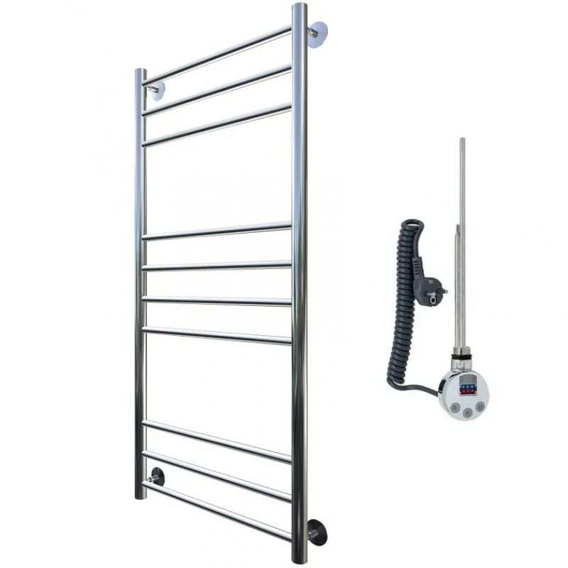 Электрический полотенцесушитель Тругор Аспект 3 элТЭН 120x50 см, цвет хром. Используется для просушки влажных вещей и полотенец, а также дополнительного обогрева помещения. Отсутствует вероятность замерзания теплоносителя. Изготовлен из пищевой нержавеющей трубы марки AISI 201, которая отличается стойкостью к высоким температурам и образованию коррозии.