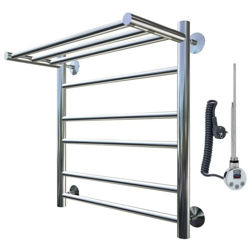 Электрический полотенцесушитель Тругор Аспект 3 элТЭН 60x40 см с полкой, цвет хром. Используется для просушки влажных вещей и полотенец, а также дополнительного обогрева помещения. Отсутствует вероятность замерзания теплоносителя. Изготовлен из пищевой нержавеющей трубы марки AISI 201, которая отличается стойкостью к высоким температурам и образованию коррозии.