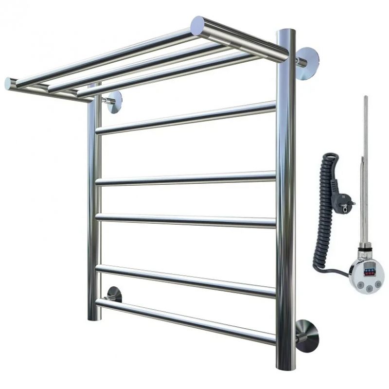 Электрический полотенцесушитель Тругор Аспект 3 элТЭН 60x50 см с полкой, цвет хром. Используется для просушки влажных вещей и полотенец, а также дополнительного обогрева помещения. Отсутствует вероятность замерзания теплоносителя. Изготовлен из пищевой нержавеющей трубы марки AISI 201, которая отличается стойкостью к высоким температурам и образованию коррозии.