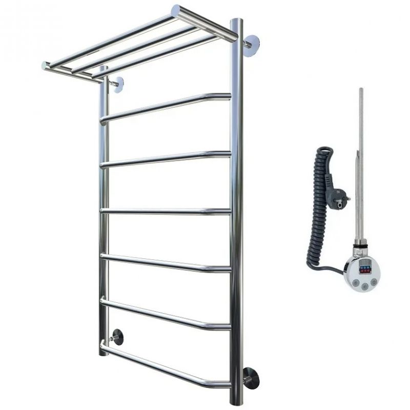 Электрический полотенцесушитель Тругор Браво 1 элТЭН 100x60 см с полкой, цвет хром. Используется для просушки влажных вещей и полотенец, а также дополнительного обогрева помещения. Отсутствует вероятность замерзания теплоносителя. Изготовлен из пищевой нержавеющей трубы марки AISI 201, которая отличается стойкостью к высоким температурам и образованию коррозии.