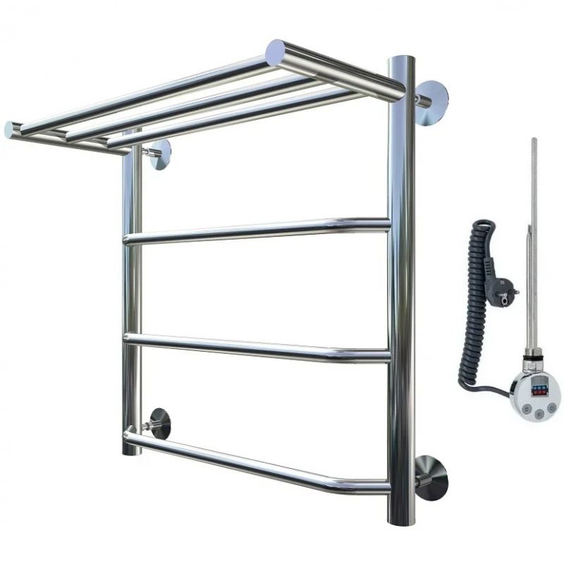 Электрический полотенцесушитель Тругор Браво 1 элТЭН 60x60 см с полкой, цвет хром. Используется для просушки влажных вещей и полотенец, а также дополнительного обогрева помещения. Отсутствует вероятность замерзания теплоносителя. Изготовлен из пищевой нержавеющей трубы марки AISI 201, которая отличается стойкостью к высоким температурам и образованию коррозии.