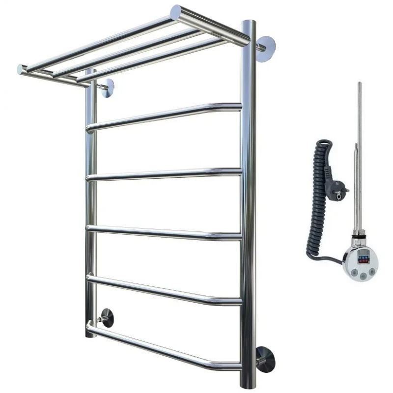 Электрический полотенцесушитель Тругор Браво 1 элТЭН 80x50 см с полкой, цвет хром. Используется для просушки влажных вещей и полотенец, а также дополнительного обогрева помещения. Отсутствует вероятность замерзания теплоносителя. Изготовлен из пищевой нержавеющей трубы марки AISI 201, которая отличается стойкостью к высоким температурам и образованию коррозии.