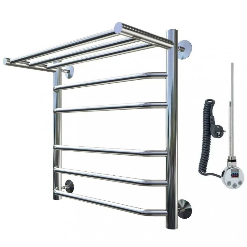 Электрический полотенцесушитель Тругор Браво 2 элТЭН 60x40 см с полкой, цвет хром. Используется для просушки влажных вещей и полотенец, а также дополнительного обогрева помещения. Отсутствует вероятность замерзания теплоносителя. Изготовлен из пищевой нержавеющей трубы марки AISI 201, которая отличается стойкостью к высоким температурам и образованию коррозии.