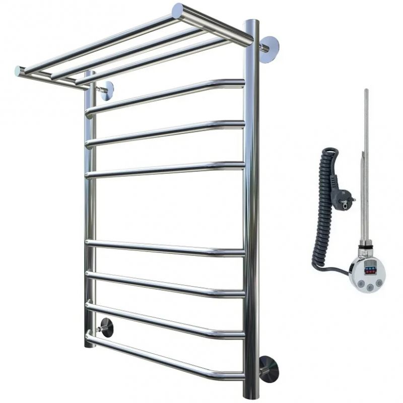 Электрический полотенцесушитель Тругор Браво 2 элТЭН 80x60 см с полкой, цвет хром. Используется для просушки влажных вещей и полотенец, а также дополнительного обогрева помещения. Отсутствует вероятность замерзания теплоносителя. Изготовлен из пищевой нержавеющей трубы марки AISI 201, которая отличается стойкостью к высоким температурам и образованию коррозии.
