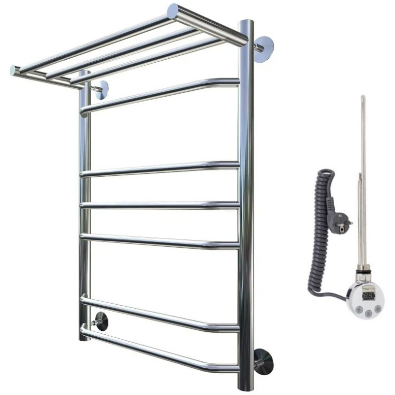 Электрический полотенцесушитель Тругор Браво 3 П элТЭН 80x60 см с полкой, цвет хром. Используется для просушки влажных вещей и полотенец, а также дополнительного обогрева помещения. Отсутствует вероятность замерзания теплоносителя. Изготовлен из пищевой нержавеющей трубы марки AISI 201, которая отличается стойкостью к высоким температурам и образованию коррозии.