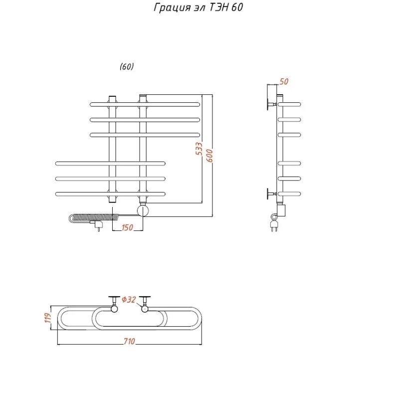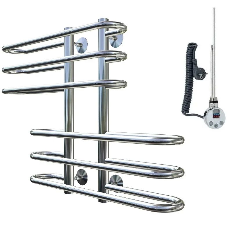 Электрический полотенцесушитель Тругор Грация элТЭН 60x60 см, цвет хром. Используется для просушки влажных вещей и полотенец, а также дополнительного обогрева помещения. Изготовлен из пищевой нержавеющей трубы марки AISI 201, которая отличается стойкостью к высоким температурам и образованию коррозии, выдерживает значительные перепады давления.
