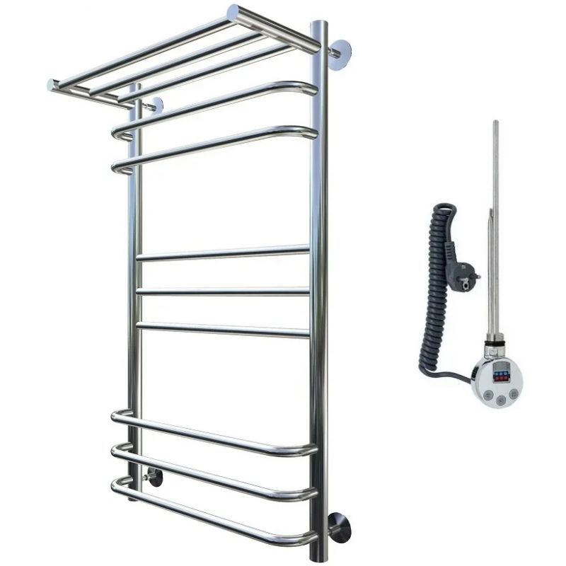 Электрический полотенцесушитель Тругор Идеал Комби 3 элТЭН 100x60 см с полкой, цвет хром. Используется для просушки влажных вещей и полотенец, а также дополнительного обогрева помещения. Отсутствует вероятность замерзания теплоносителя. Изготовлен из пищевой нержавеющей трубы марки AISI 201, которая отличается стойкостью к высоким температурам и образованию коррозии.