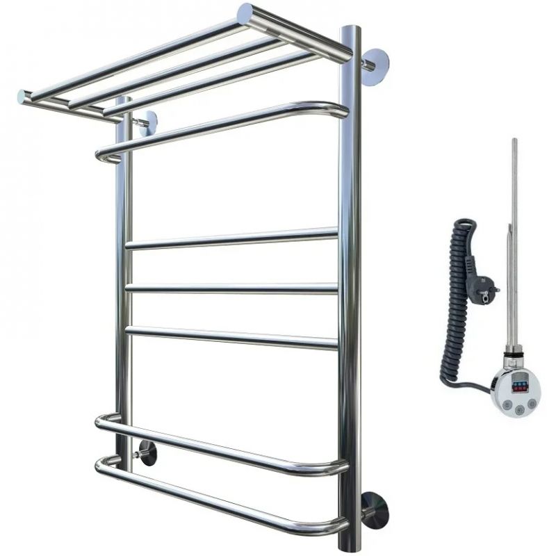 Электрический полотенцесушитель Тругор Идеал Комби 3 П элТЭН 80x60 см с полкой, цвет хром. Используется для просушки влажных вещей и полотенец, а также дополнительного обогрева помещения. Отсутствует вероятность замерзания теплоносителя. Изготовлен из пищевой нержавеющей трубы марки AISI 201, которая отличается стойкостью к высоким температурам и образованию коррозии.