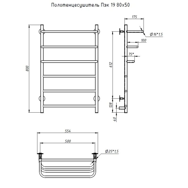 Электрический полотенцесушитель Тругор ПЭК 19 80x50 см, цвет хром. Используется для просушки влажных вещей и полотенец, а также дополнительного обогрева помещения. Изготовлен из пищевой нержавеющей трубы марки AISI 201, которая отличается стойкостью к высоким температурам и образованию коррозии.