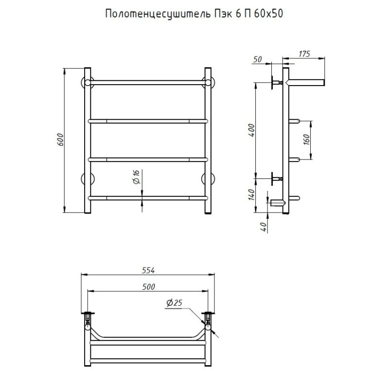 Электрический полотенцесушитель Тругор ПЭК 6 П 60x50 см с полкой, цвет хром. Используется для просушки влажных вещей и полотенец, а также дополнительного обогрева помещения. Изготовлен из пищевой нержавеющей трубы марки AISI 201, которая отличается стойкостью к высоким температурам и образованию коррозии.