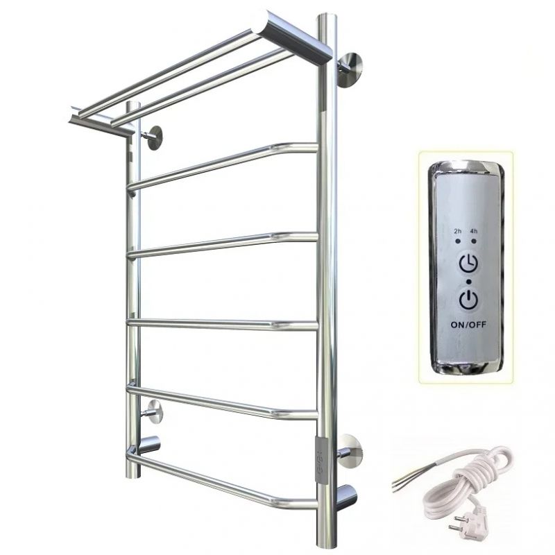 Электрический полотенцесушитель Тругор ПЭК 6 П СП 80x50 см с полкой, цвет хром. Используется для просушки влажных вещей и полотенец, а также дополнительного обогрева помещения. Изготовлен из пищевой нержавеющей трубы марки AISI 201, которая отличается стойкостью к высоким температурам и образованию коррозии.