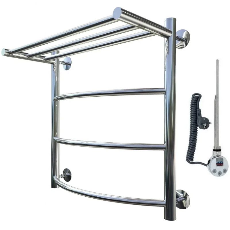 Электрический полотенцесушитель Тругор Приоритет 1 элТЭН 60x50 см с полкой, цвет хром. Используется для просушки влажных вещей и полотенец, а также дополнительного обогрева помещения. Отсутствует вероятность замерзания теплоносителя. Изготовлен из пищевой нержавеющей трубы марки AISI 201, которая отличается стойкостью к высоким температурам и образованию коррозии.