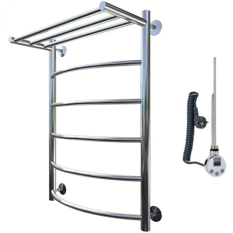 Электрический полотенцесушитель Тругор Приоритет 1 элТЭН 80x60 см с полкой, цвет хром. Используется для просушки влажных вещей и полотенец, а также дополнительного обогрева помещения. Отсутствует вероятность замерзания теплоносителя. Изготовлен из пищевой нержавеющей трубы марки AISI 201, которая отличается стойкостью к высоким температурам и образованию коррозии.