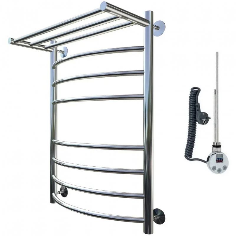 Электрический полотенцесушитель Тругор Приоритет 2 элТЭН 80x40 см с полкой, цвет хром. Используется для просушки влажных вещей и полотенец, а также дополнительного обогрева помещения. Отсутствует вероятность замерзания теплоносителя. Изготовлен из пищевой нержавеющей трубы марки AISI 201, которая отличается стойкостью к высоким температурам и образованию коррозии.