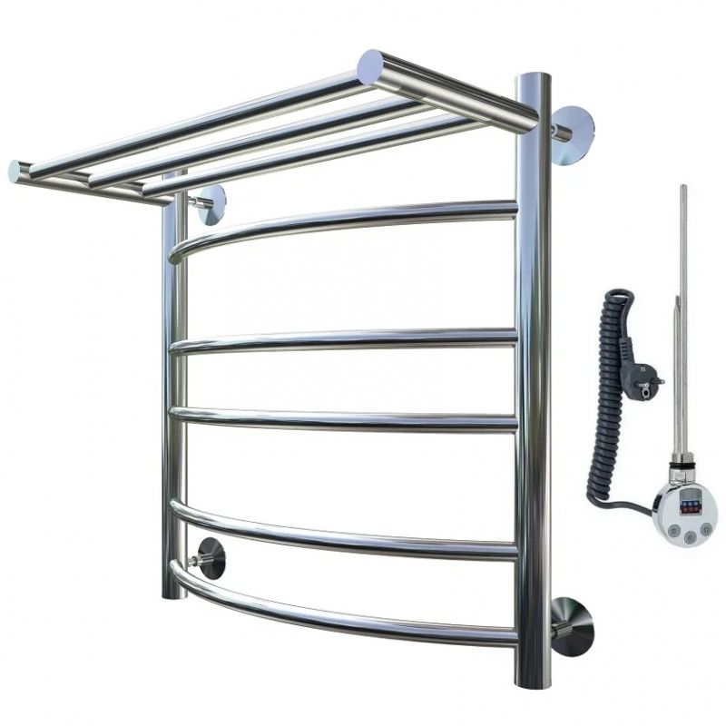 Электрический полотенцесушитель Тругор Приоритет 3 элТЭН 60x50 см с полкой, цвет хром. Используется для просушки влажных вещей и полотенец, а также дополнительного обогрева помещения. Отсутствует вероятность замерзания теплоносителя. Изготовлен из пищевой нержавеющей трубы марки AISI 201, которая отличается стойкостью к высоким температурам и образованию коррозии.
