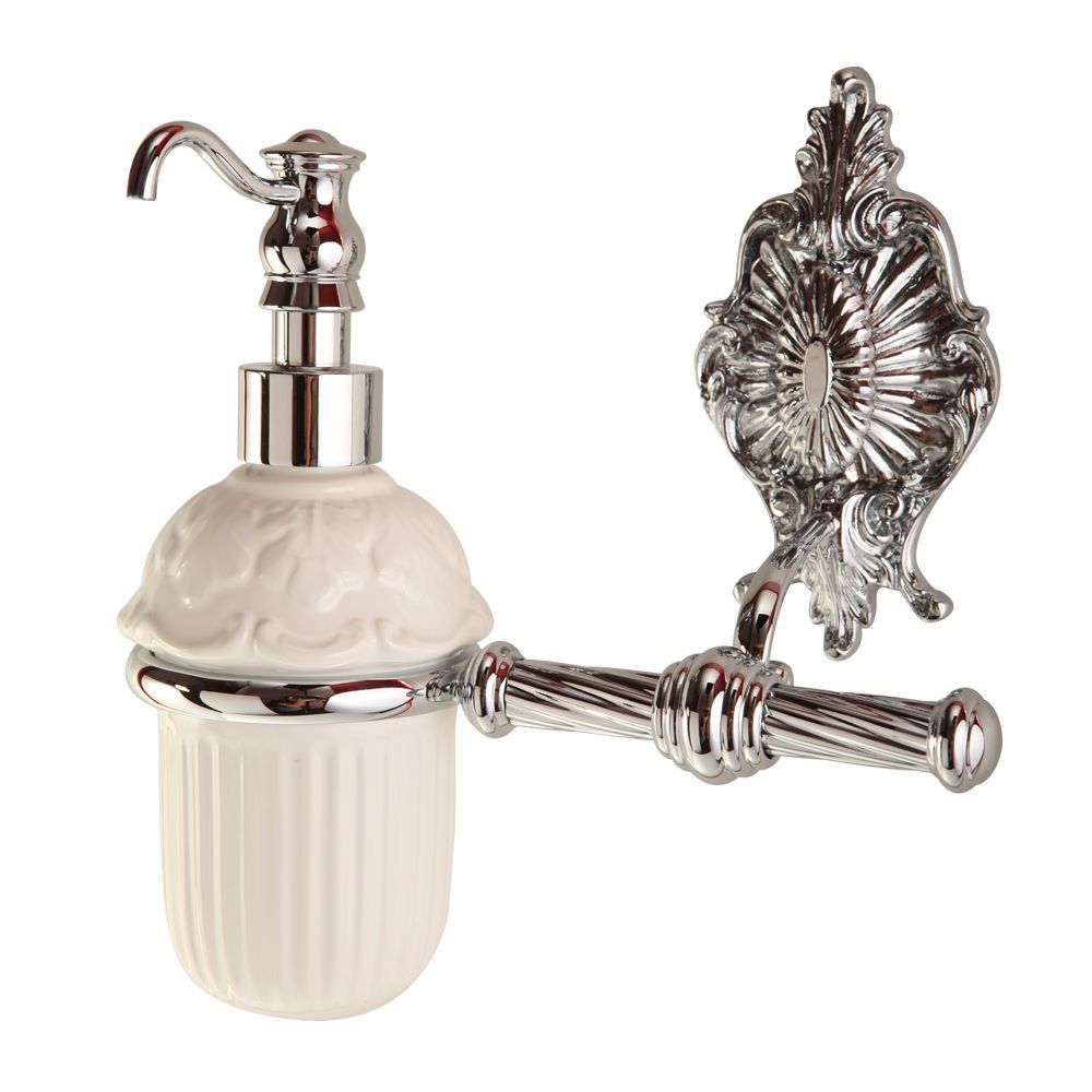 Дозатор жидкого мыла настенный с керамической колбой коллекции ELISABETTA бренда MIGLIORE - один из необходимых аксессуаров, который можно использовать в ванной комнате и на кухне для мыла или моющего средства. Высококачественная белая керамика легко моется, а нажимной механизм имеет эргономичный дизайн. Между керамикой и латунным кольцом имеется уплотнительное пластиковое кольцо, которое надежно удерживает колбу дозатора. Розетка аксессуара имеет необычную форму, и удобный крепеж.