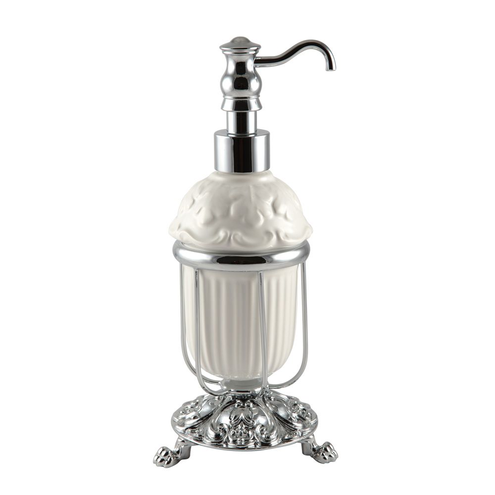 Дозатор жидкого мыла настольный с керамической колбой коллекции ELISABETTA бренда MIGLIORE - один из необходимых аксессуаров, который можно использовать в ванной комнате и на кухне для мыла или моющего средства. Высококачественная белая керамика легко моется, а нажимной механизм имеет эргономичный дизайн. Между керамикой и латунным кольцом имеется уплотнительное пластиковое кольцо, которое надежно удерживает колбу дозатора.