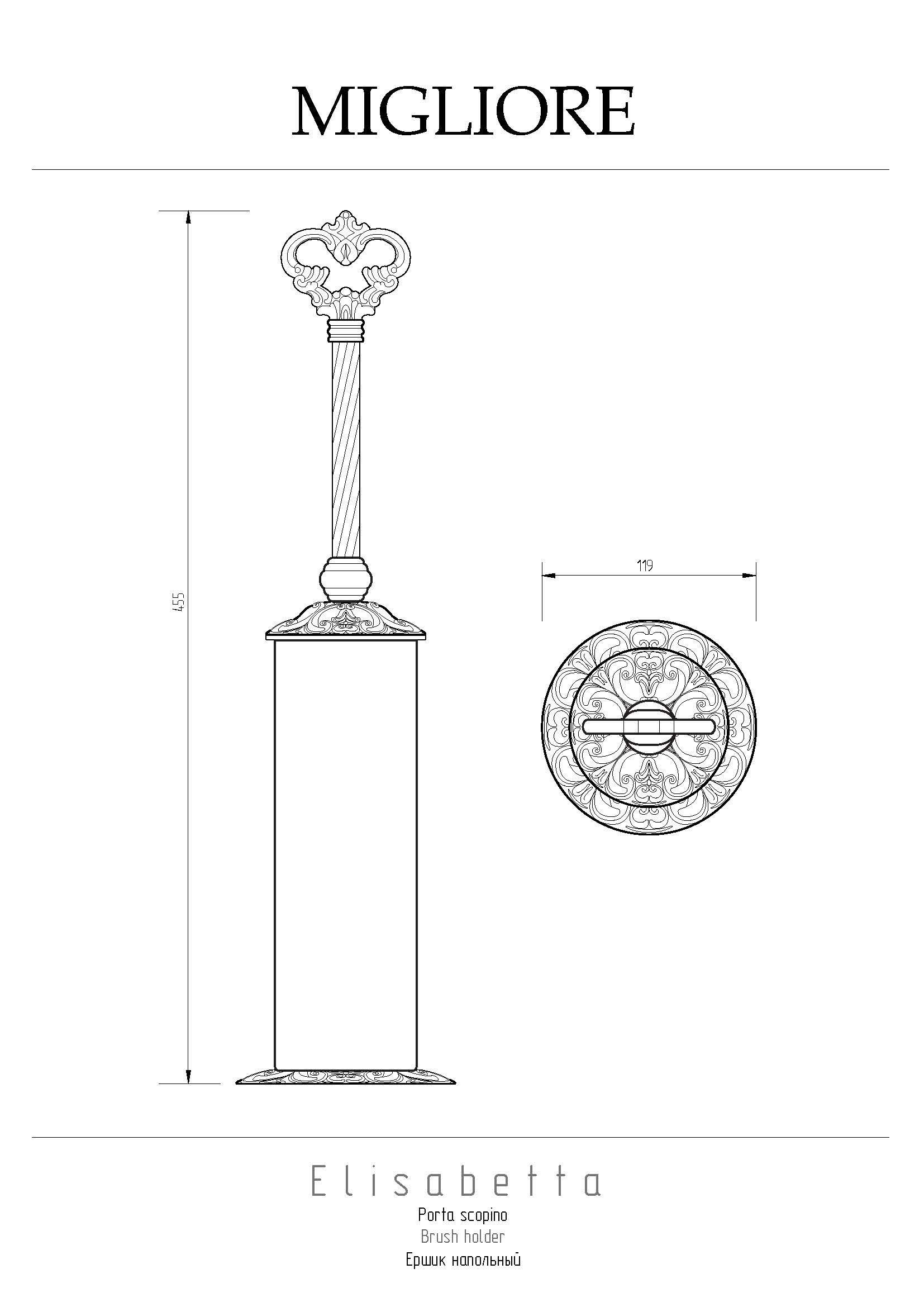 Напольный ершик коллекции ELISABETTA бренда MIGLIORE - это функциональный аксессуар для ванной комнаты. Внутри латунной колбы вставлена пластиковая колба, которую легко вынуть, чтобы помыть