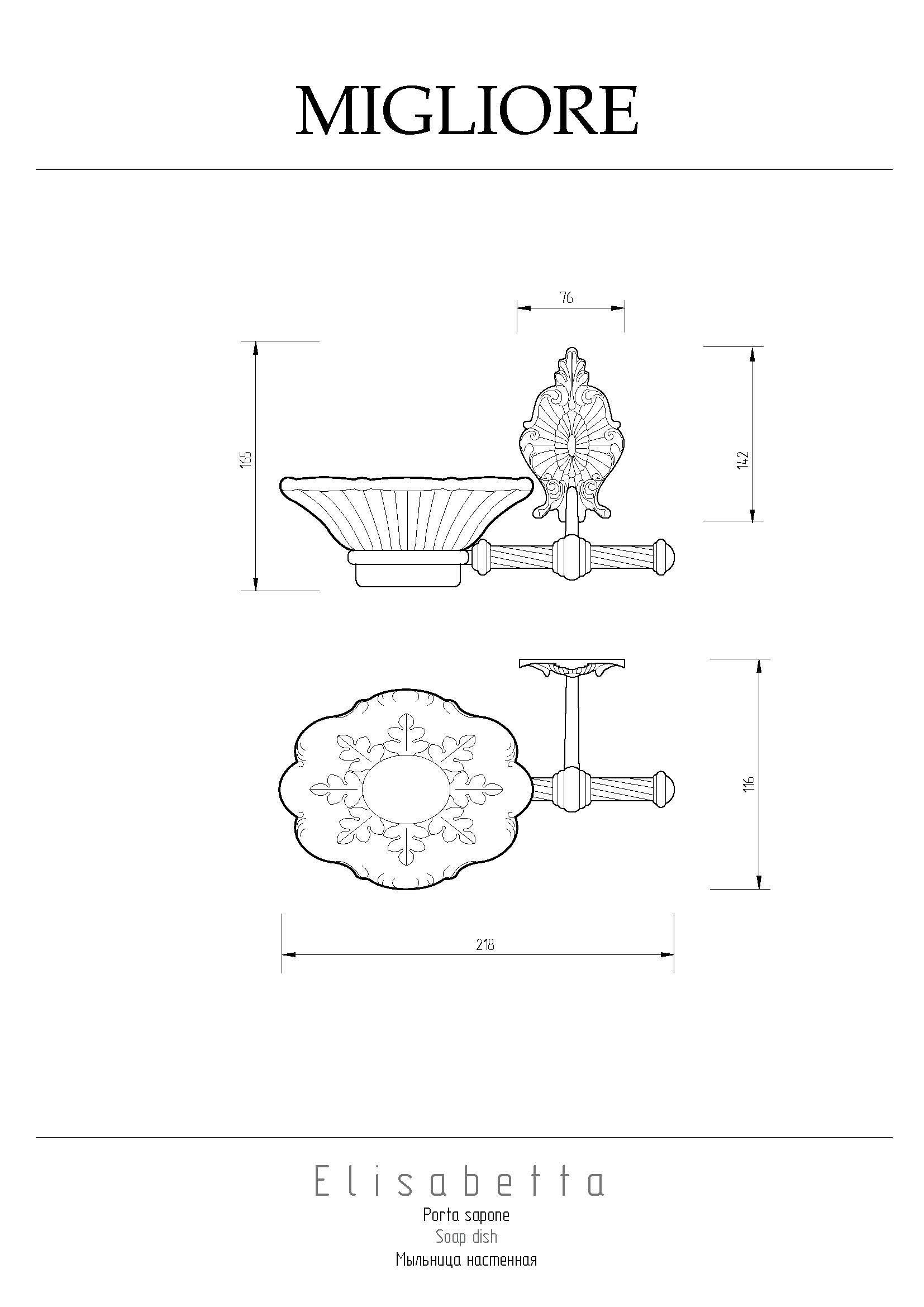 Мыльница настенная коллекции ELISABETTA бренда MIGLIORE - один из необходимых аксессуаров для ванной комнаты. Качественная белая керамика, которую очень легко мыть. Между керамикой и латунным кольцом имеется уплотнительное пластиковое кольцо, которое надежно удерживает мыльницу. Розетка аксессуара имеет необычную форму, и удобный крепеж.